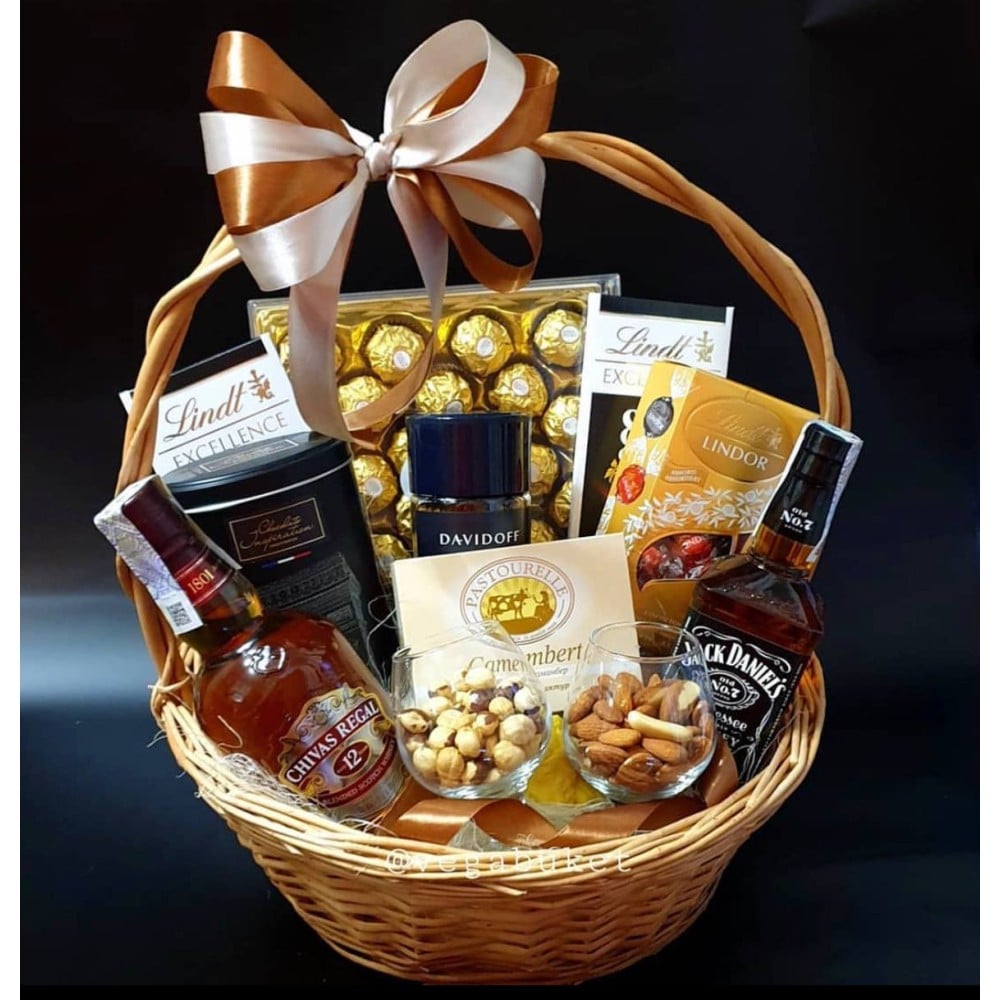 Состав Корзины: a lot of elite alcohol, cookies, chocolate bars