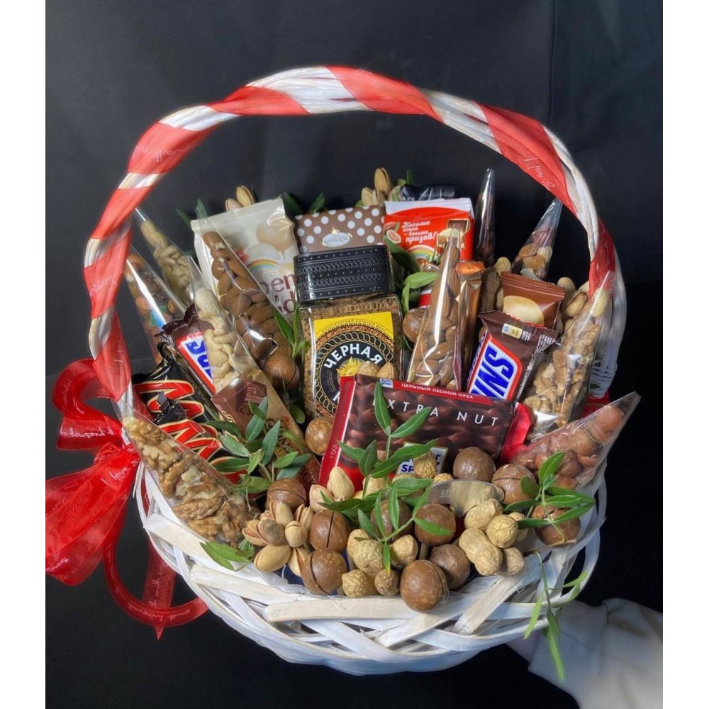 Эта шикарная корзинка для мужчин состоит из бутылочки хорошего вина, коробочки крепкого чая и разнообразных вкусностей. Если вы решили устроить романтический вечер для своего любимого то эта композиция позволит вам убить сразу двух зайцев: сделать приятное мужчине и украсить ваш вечер роскошной композицией. Кроме того корзинка превосходно украшена и создает сама по себе впечатление праздника. Доставка в любую точку города. В любое удобное для вас время.